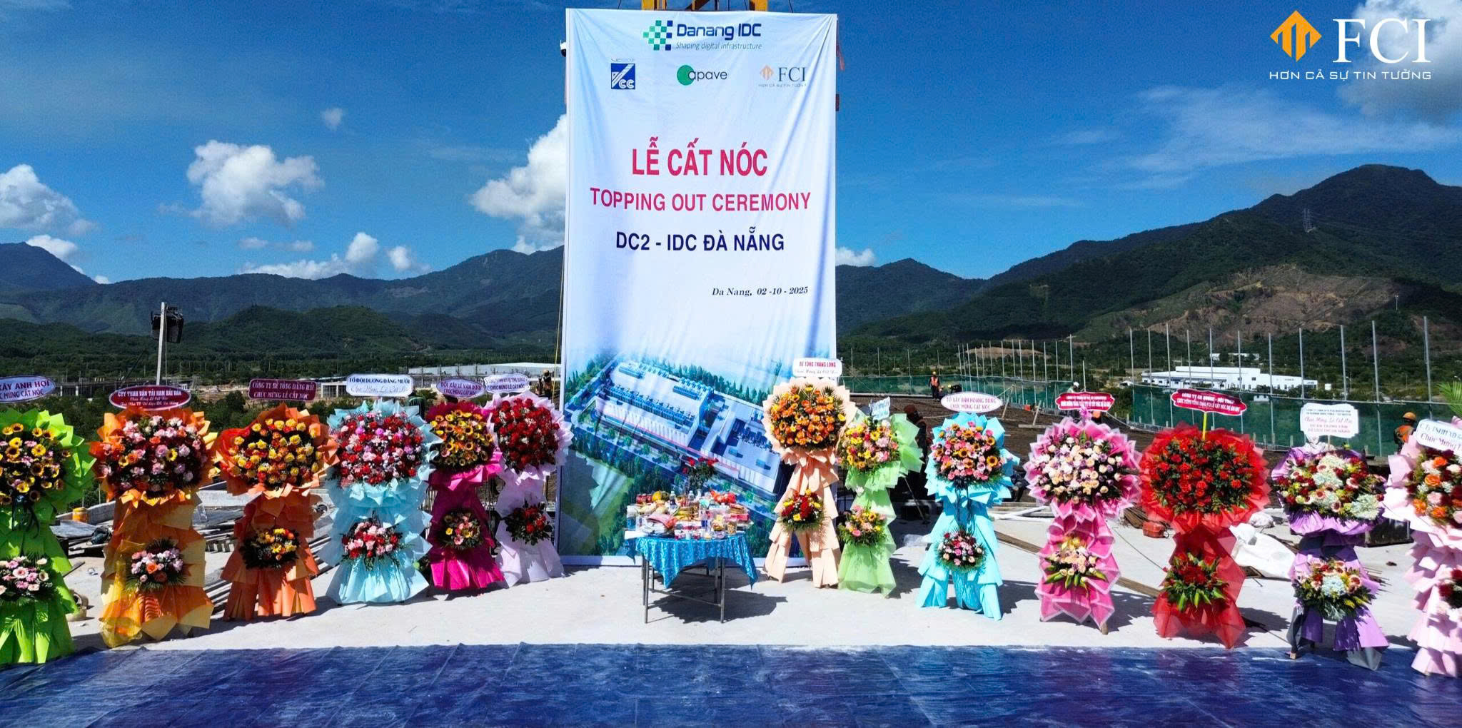 Vào sáng ngày 02/10/2025, Công ty cổ phần Đầu tư và Xây dựng FCI Việt Nam đã tổ chức Lễ cất nóc DC2 – Trung tâm dữ liệu IDC Đà Nẵng, đánh dấu cột mốc quan trọng trong hành trình thi công công trình.